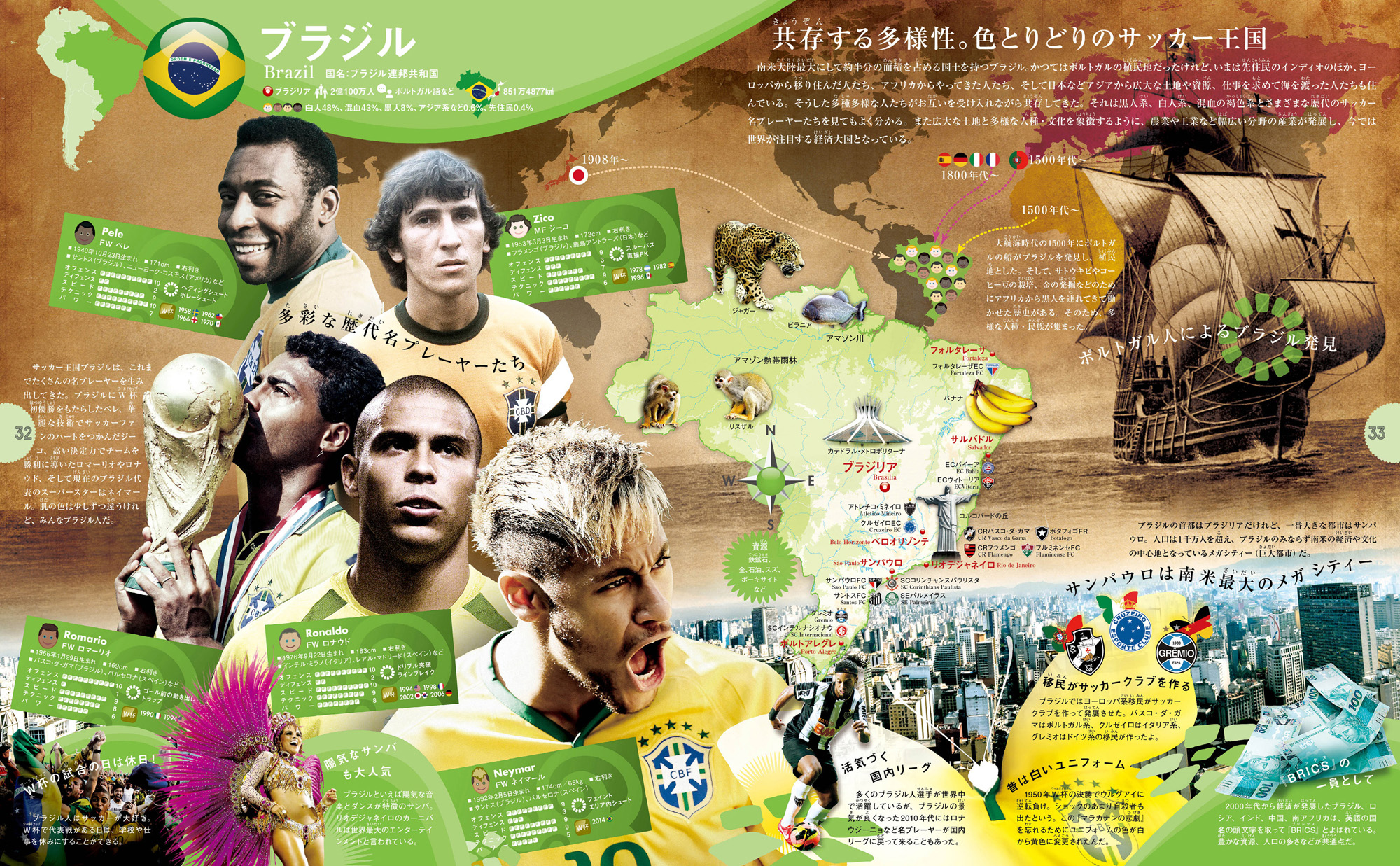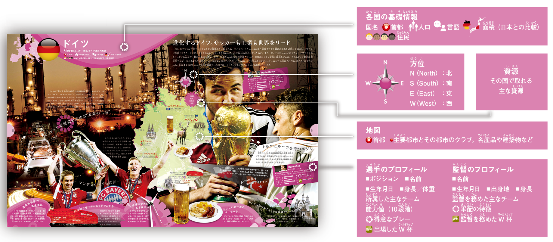 本書はそうしたこどもたちにとって、世界のサッカーへの興味から、その国々の社会、文化へと興味を広げるきっかけとなる『サッカー世界図鑑』です。